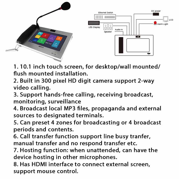 Enabled by TCP/IP technology, Huanyutong IP Network Intercom /broadcasting System is a integrated system of two-way audio amplification and one-way (or two-way) video transmission. This system steams the audio and video signals over LAN or WAN by the form of IP packet., completely solving the problems existing in traditional intercom or broadcasting system: poor sound quality, complicate maintaining management, limitation of transmission distance, poor interaction, being heard without image, etc. This system is easy to be installed and operated, can work everywhere as long as Ethernet is available.