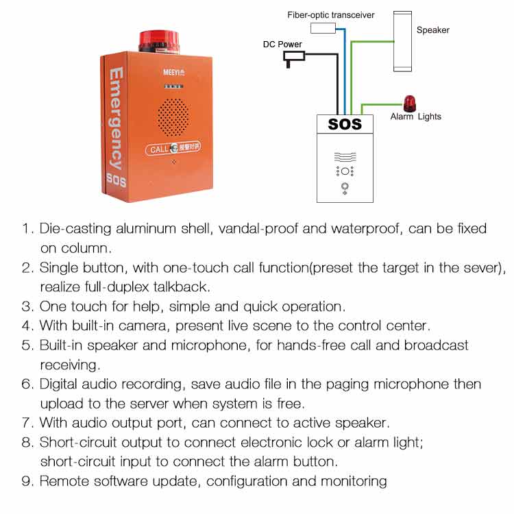 2 Single button or double button, with one-touch call function(pre-set the target in the server), realize full-duplex talkback.