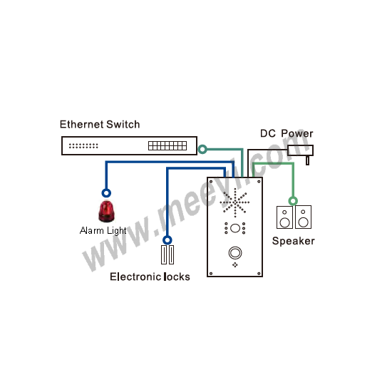 8 Short-circuit output to connect electronic lock or alarm light; short-circuit input to connect the alarm button.