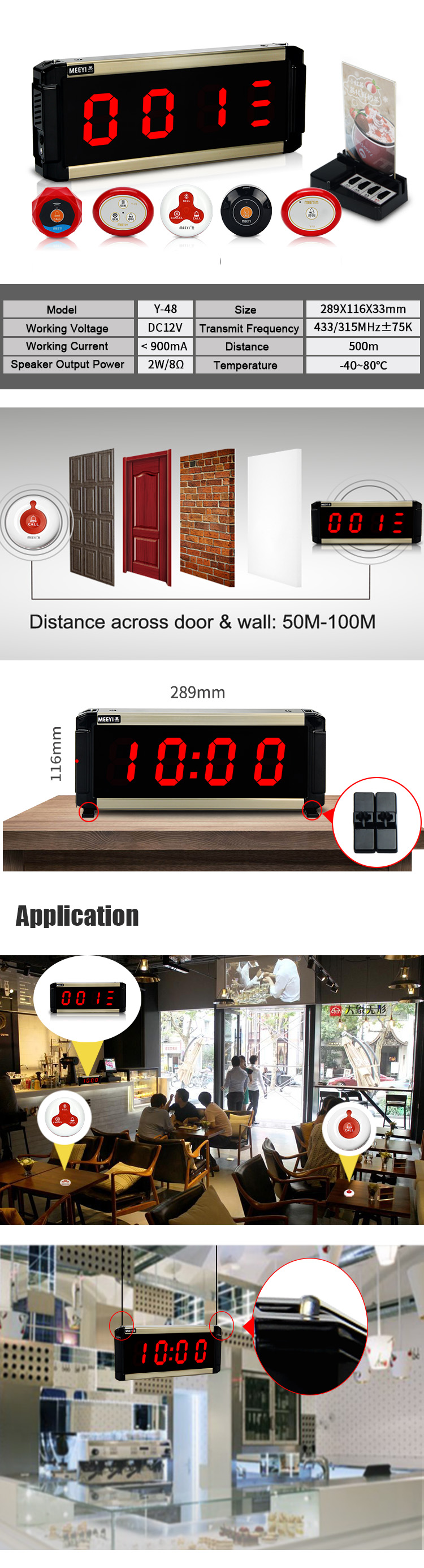 Wireless calling system can be used in restaurants, hotels, hospitals, tea house, coffee shops, health clubs, beauty salon, spa center, bars, swimming pool, beach, etc.
