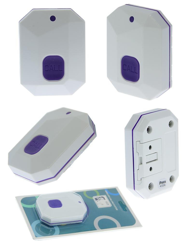 Combinations: wireless receiver + transmitters (call button) + transmitter (cancel button) + repearters (optional)