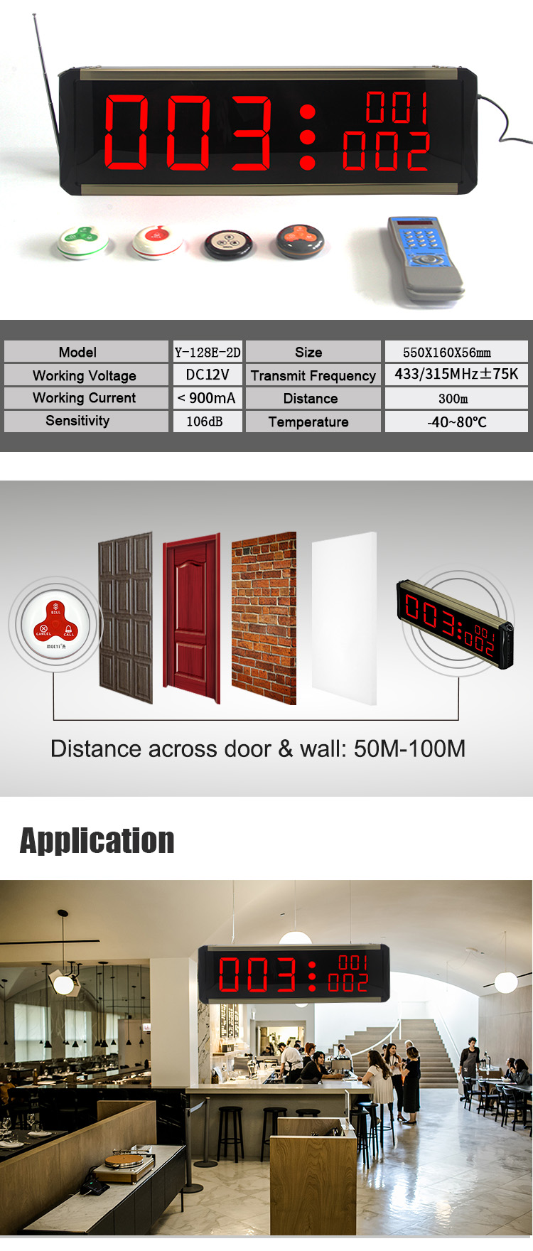 Y-128E-2D receptor inalámbricoPantalla de doble caraUtilizado para el restaurante, hotel, hospital, ETC para llamar al camarero cuando las llamadas mostrará Número de mesa.