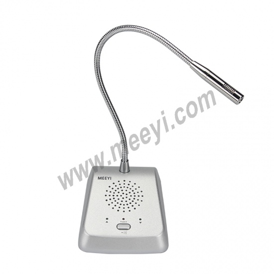 Example: MY-360D is used in bank window (Master staion inside and substation outside). One man is coming the bank window for his business. And during the conduction, bank satff needs to talk something private with colleage, then satff can press the key on the master station to turn to be mute, so that substation outside would not broadcast, and the man would not hear the private dialogue.