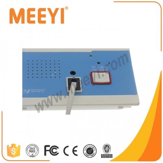 4) there are two buttons, one little round button, one red button with long-line, so patient can lay on the bed to press the button conveniently.