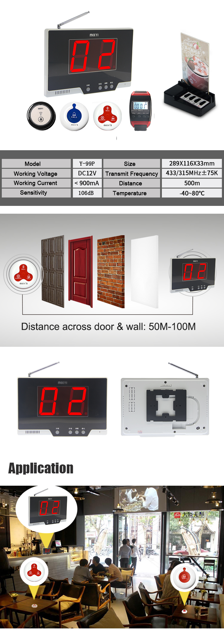 Wireless calling system can be used in restaurants, hotels, hospitals, tea house, coffee shops, health clubs, beauty salon, spa center, bars, swimming pool, beach, etc.