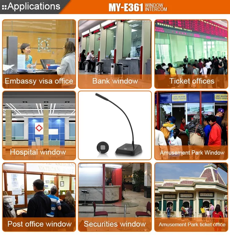 Meeyi window intercom is widely used in bank, postoffice, hospital, park, ticket office.
