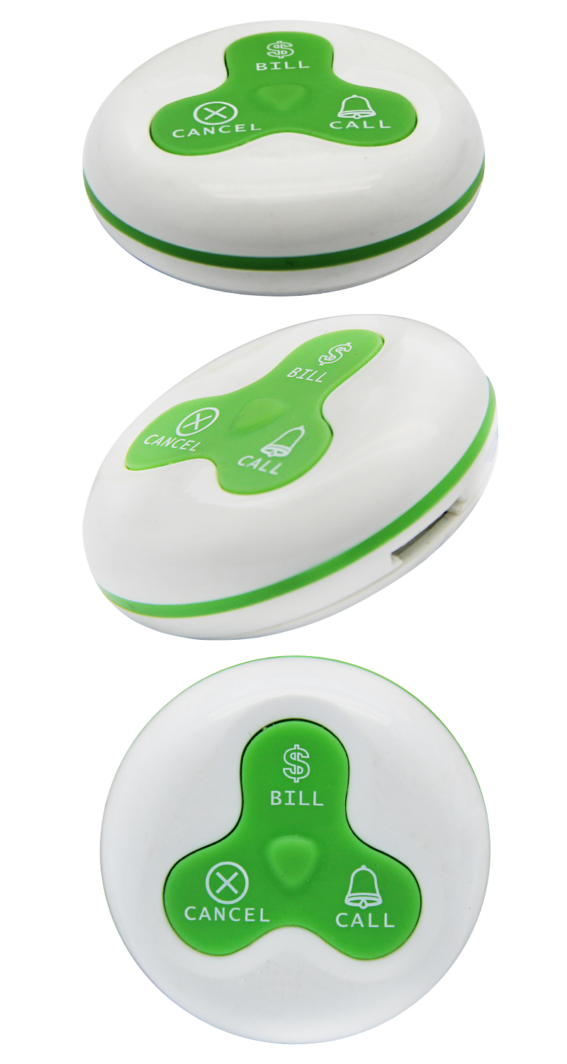 When the clients press button for the services, the message will be sent to the receiver. Upon receiving the message, the receiver will show the table/room/bed No. and ring. Then waitress will go for the services.