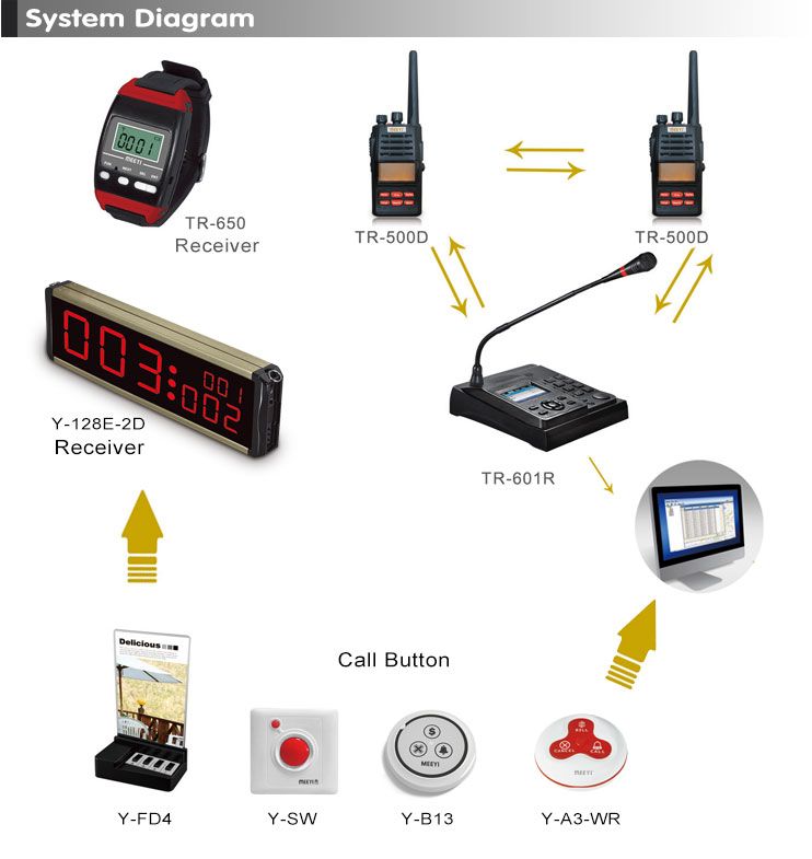 3. The volume is adjustable and work with 300pcs of three keys call buttons at most.